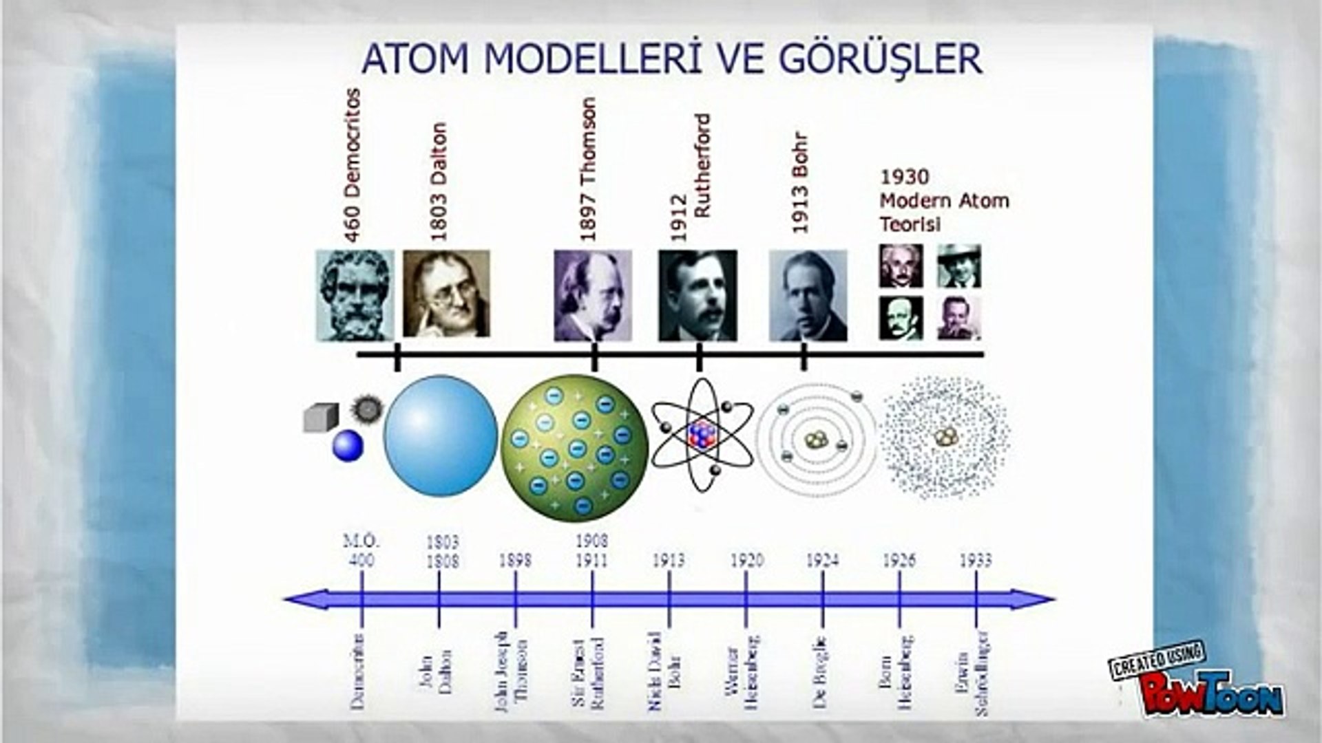 Atom modelleri konusu, lise kimya dersi için ilk ve temel konulardan biri olduğu için iyice … 1808 yılında dalton adlı bilim adamı atom hakkında ilk bilgileri vermiştir. Atom maddenin en küçük yapıtaşıdır. Atom modelleri konusu, lise kimya dersi için ilk ve temel konulardan biri olduğu için iyice … 1913 yılında niels bohr, hidrojenin ışıma spektrumuna dayanarak ve planck'ın kuantum kuramını göz önüne alarak yeni bir atom modeli önermiştir. Hidrojen atomunun kesikli spektrum çizgileri oluşturmasından hareketle atomdaki elektronların kuantlaşmış enerjilere sahip olabileceğini düşündü. Modern fizikteki çoğu olay gündelik algımıza aykırı görünecektir. Dalton, maddenin en küçük parçasına " atom " adını verdi ve "atom içi dolu yoğun bir küredir bu nedenle parçalanamaz" şeklinde bir açıklama getirdi.